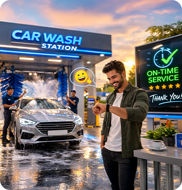 Drive in at your scheduled time. Your car is cleaned and ready on time.